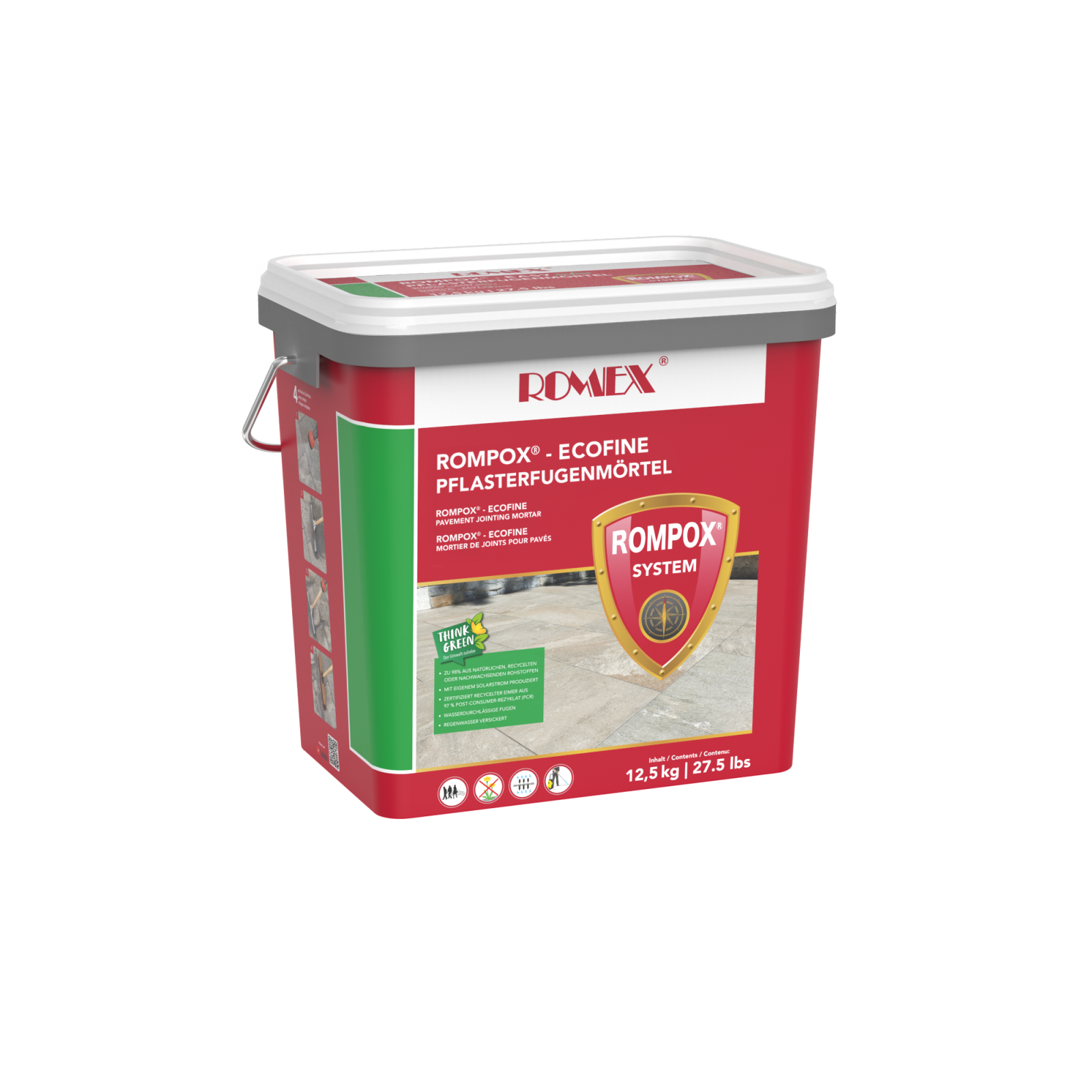 ROMPOX® - ECOFINE este un mortar pentru îmbinări pavele, piatra, placi ceramice, gata de utilizare, cu un singur component, care se întărește la contactul cu aerul sau oxigenul.