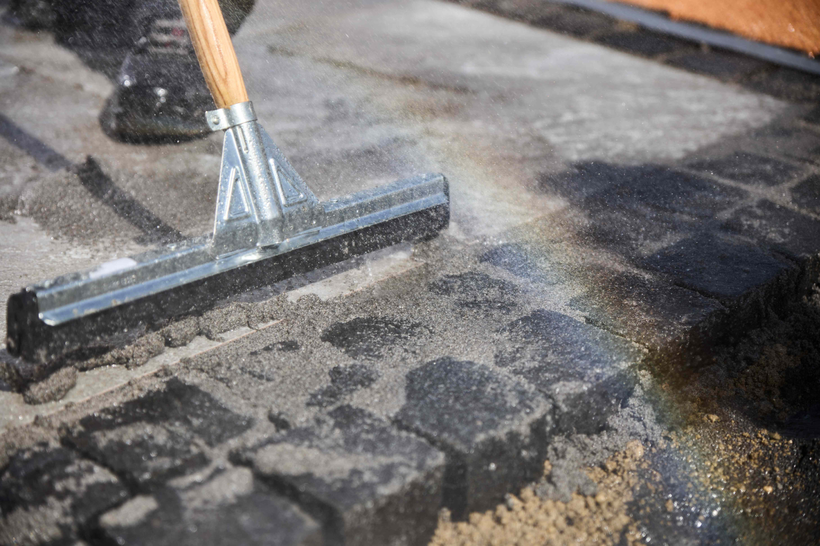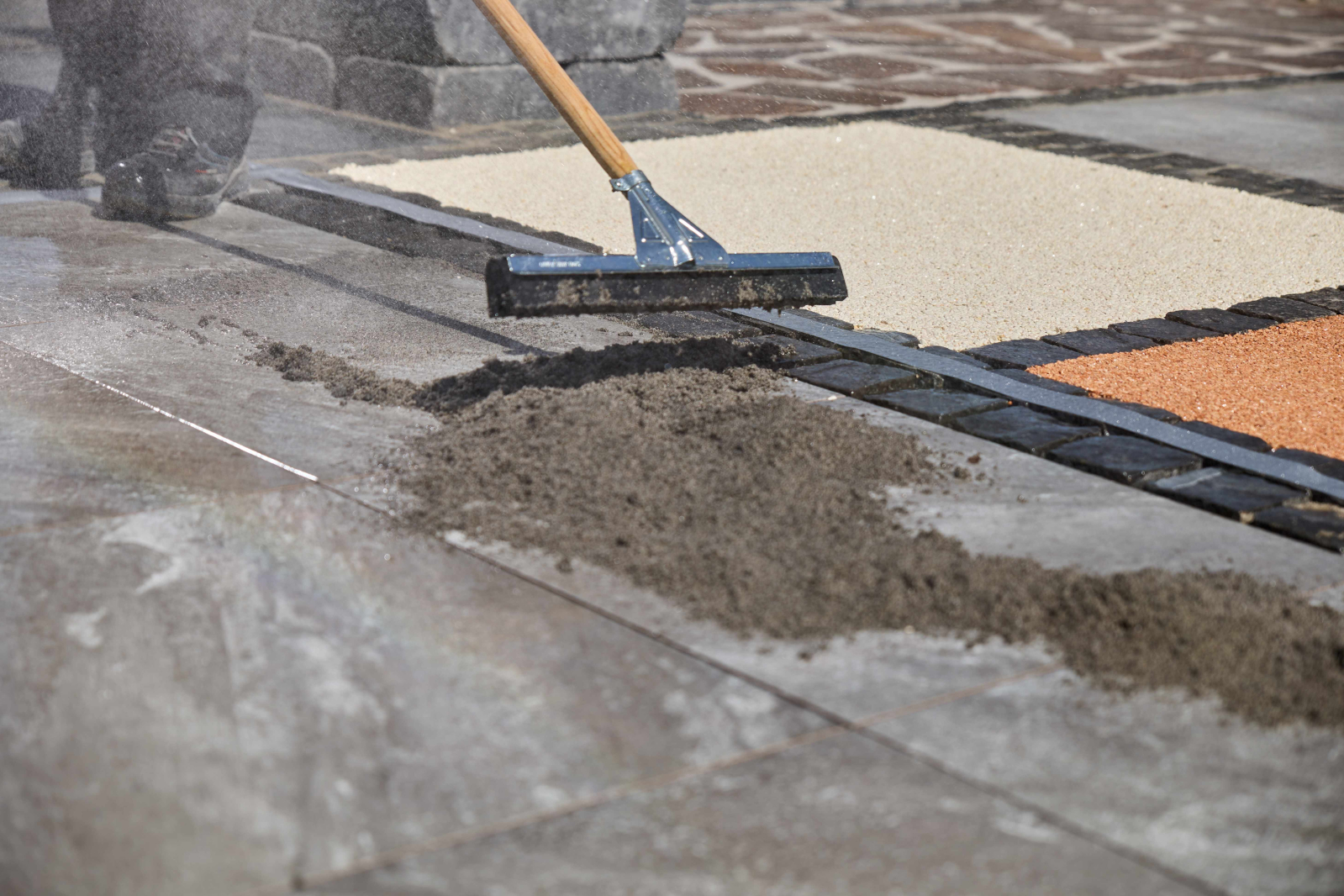 Aplicare: Deschideți capacul găleții, scoateți sacul vidat, tăiați-l și turnați imediat mortarul de îmbinare a pavajului în porțiuni pe suprafața pre-umezită. Apoi utilizați un jet de apă ușor și o racletă de cauciuc pentru a introduce continuu și intensiv mortarul în îmbinări cu multă apă, pentru a asigura umplerea completă a îmbinărilor. Nu este necesară o compactare suplimentară. Reziduurile de mortar sunt clătite de pe suprafață cu un jet fin de apă fără să se spele îmbinările.